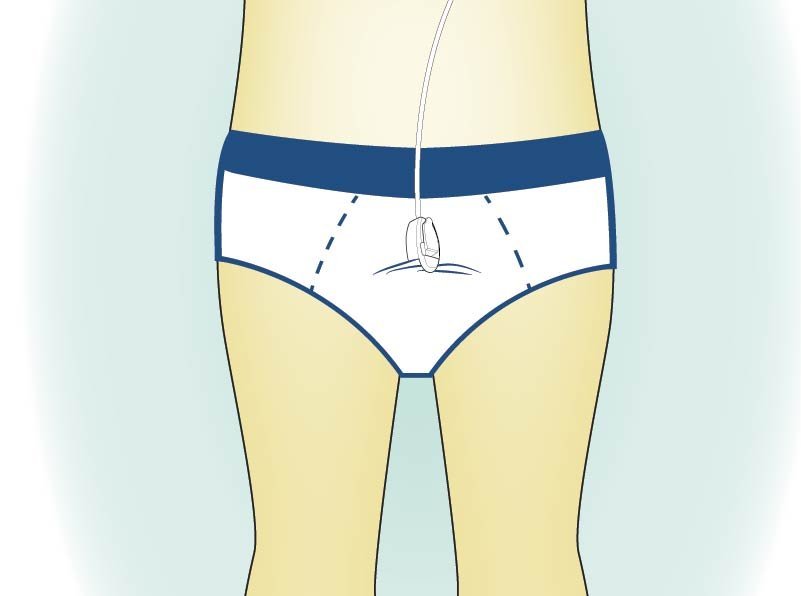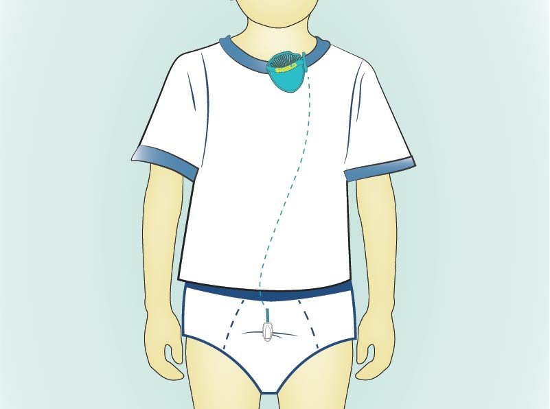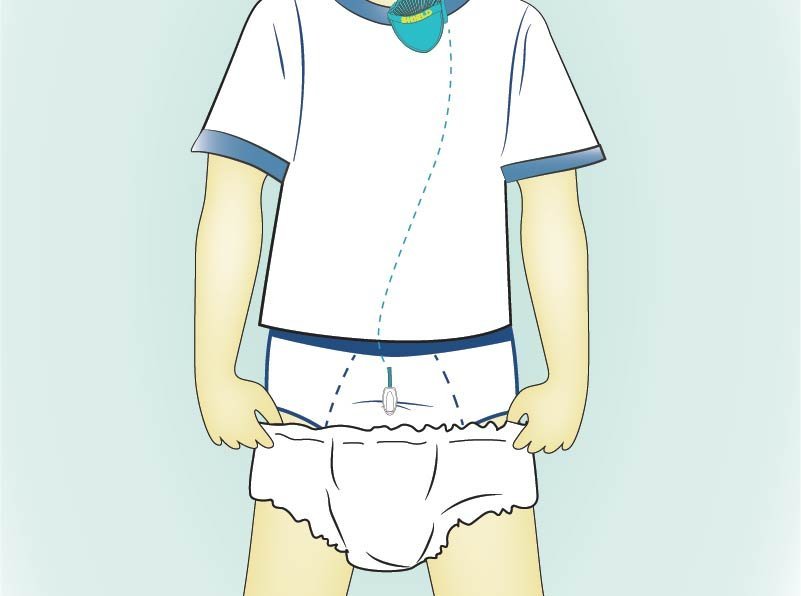 Attach the sensor to the outside of child’s underwear, and place the diaper over the underwear. The sensor should be sandwiched between the undergarment and the diaper.