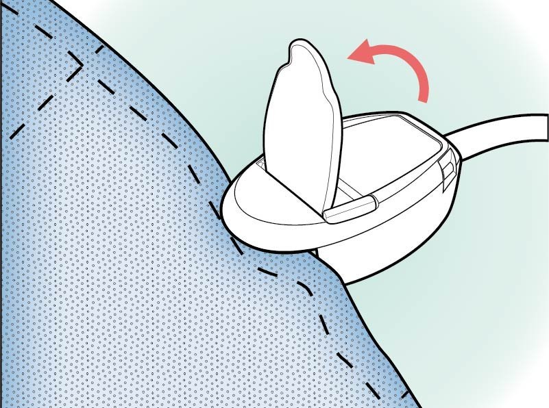 Fasten the alarm unit to the outside neckline or around arm with optional armband accessory (sold separately).